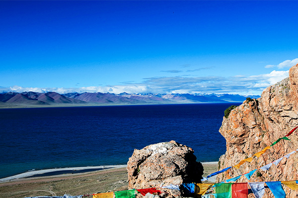 早餐后,驱车经过藏北的大草原,领略五彩经幡飘荡,驰骋于青藏公路,翻越海拔5190米那根拉山到达西藏三大圣湖之首的“天湖”纳木错(游览时间约1.5小时),海拔4718m,是世界上海拔最高、我国第二大的咸水湖,南面有终年积雪的念青唐古拉山,北侧和西侧有高原丘陵,广阔的湖滨,草原绕湖四周,水草丰美;湖水含盐量高,流域范围内野生动物资源丰富,有牦牛、山羊等;湖中多野禽,产细鳞鱼和无鳞鱼;湖水清澈,与四周雪山相映,风景秀丽,像一粒晶莹的明珠镶嵌在万里羌塘草原上。游客自理当地风味简餐后沿路返回,20:00左右到达拉萨入住酒店。